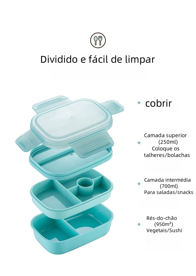 Caixa de salada de frutas de grande capacidade em camadas, lancheira infantil, lancheira para adultos